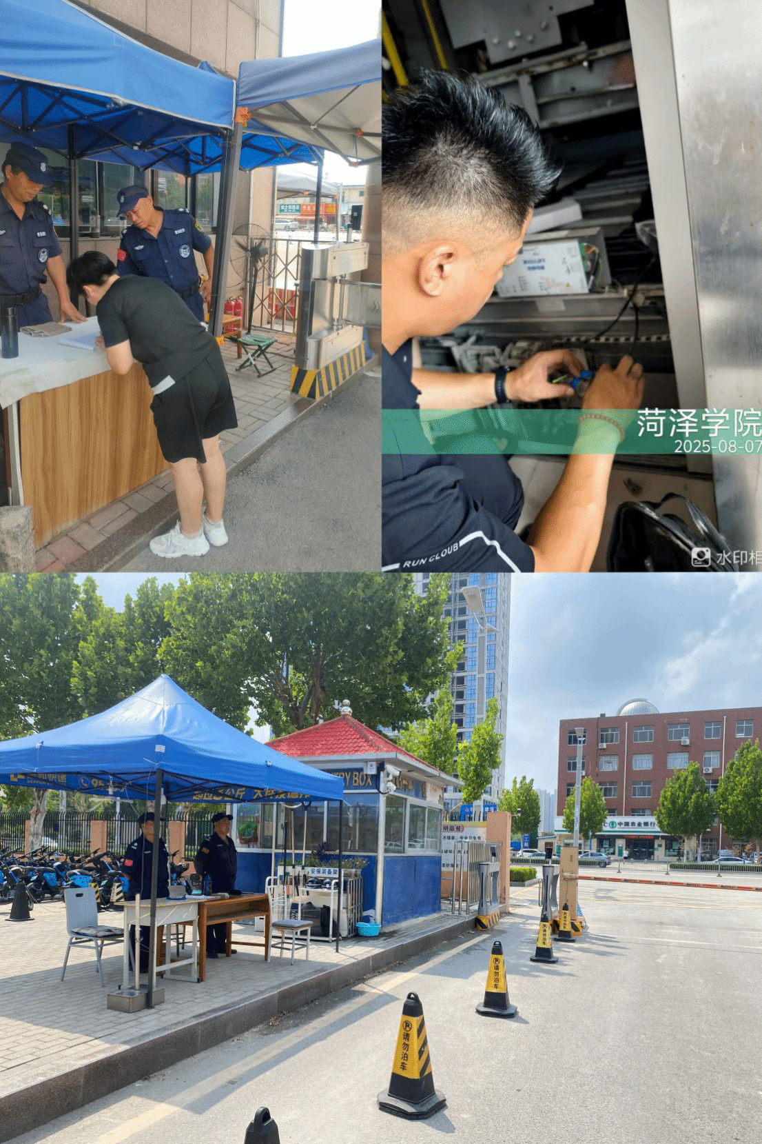 安全保卫处24小时轮流值班值守,严格做好各大门口和监控室值班,对学校各个楼宇进行无死角巡逻,确保校园安全。对bwin必赢登录入口电梯、监控设施设备进行全面安全检查维修,对消防设施进行安全检查维修,完成综合实验楼消防设施设备维修改造,确保设备正常安全运行。对校园内的无牌、改装电动车以及僵尸电动车和自行车进行全面清理,完成对机电楼西侧机动车车位和非机动车重新规整划线。对暑期有施工的二级单位做好安全提醒和监管。